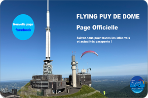 Chez Flying Puy de Dôme, nous mettons un point d’honneur à rester proches de notre clientèle, de nos élèves-pilotes, dents passagers biplace, mais aussi de toute la communauté parapente du massif du Sancy et de la Chaîne des Puys. Les réseaux sociaux sont devenus un véritable outil pour partager notre passion du vol libre, vos photos de baptêmes, de vos stages, les infos du jour, les conditions météo et les nouveautés matériel.