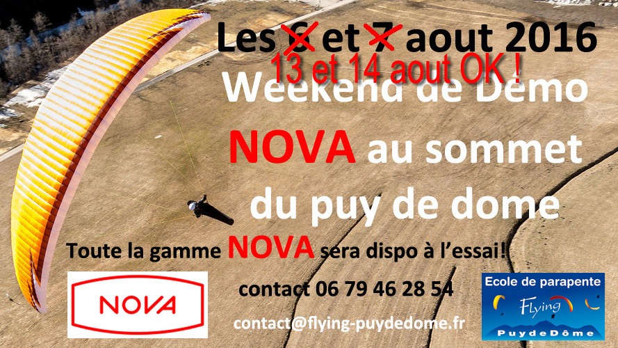 NOVA et Flying Puy de Dôme organise un week-end "Démo" les 13 et 14 aout 2016 sur le site du Puy de Dôme!